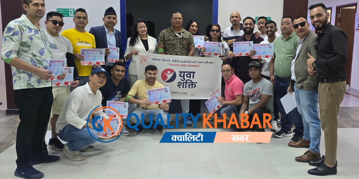 कुवेत - कुवेत १२ सेप्टेम्बर केही महिनाअघि मात्र गठन भएको युवा शक्ति टीमद्वारा आयोजना गरिएको रक्तदान कार्यक्रम शुक्रबार कुवेतको सेन्ट्रल ब्लड बैंकमा उत्साहजनक सहभागिता बीच सम्पन्न भएको छ।