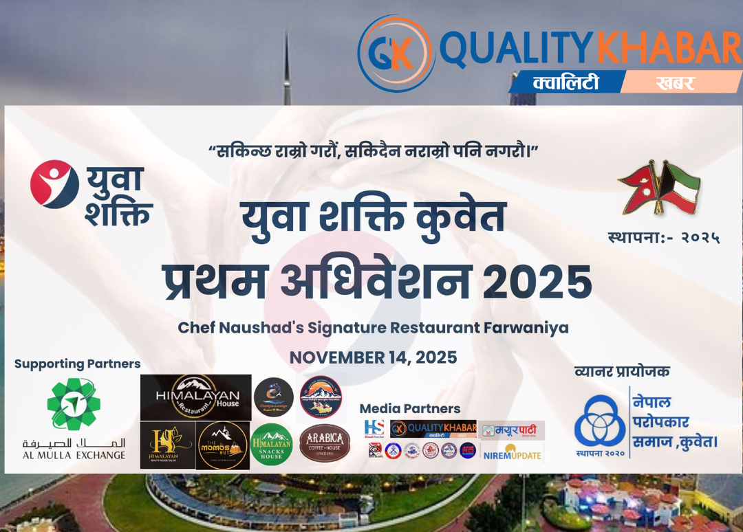 कुवेत "सके राम्रो गरौँ, नसके नराम्रो पनि नगरौं" भन्ने नाराको साथ गठन भएको युवा शक्ति कुवेतले आफ्नो अधिवेशन सम्पुर्ण नेपाली युवाहरूको प्रतिनिधित्व गर्ने गरि ‘युवा शक्ति कुवेतकाे अधिवेशन' नोभेम्बर १४ २०२५"काे सम्पूर्ण तयारी पूरा भएको आयोजक समितिले जानकारी दिएको छ।