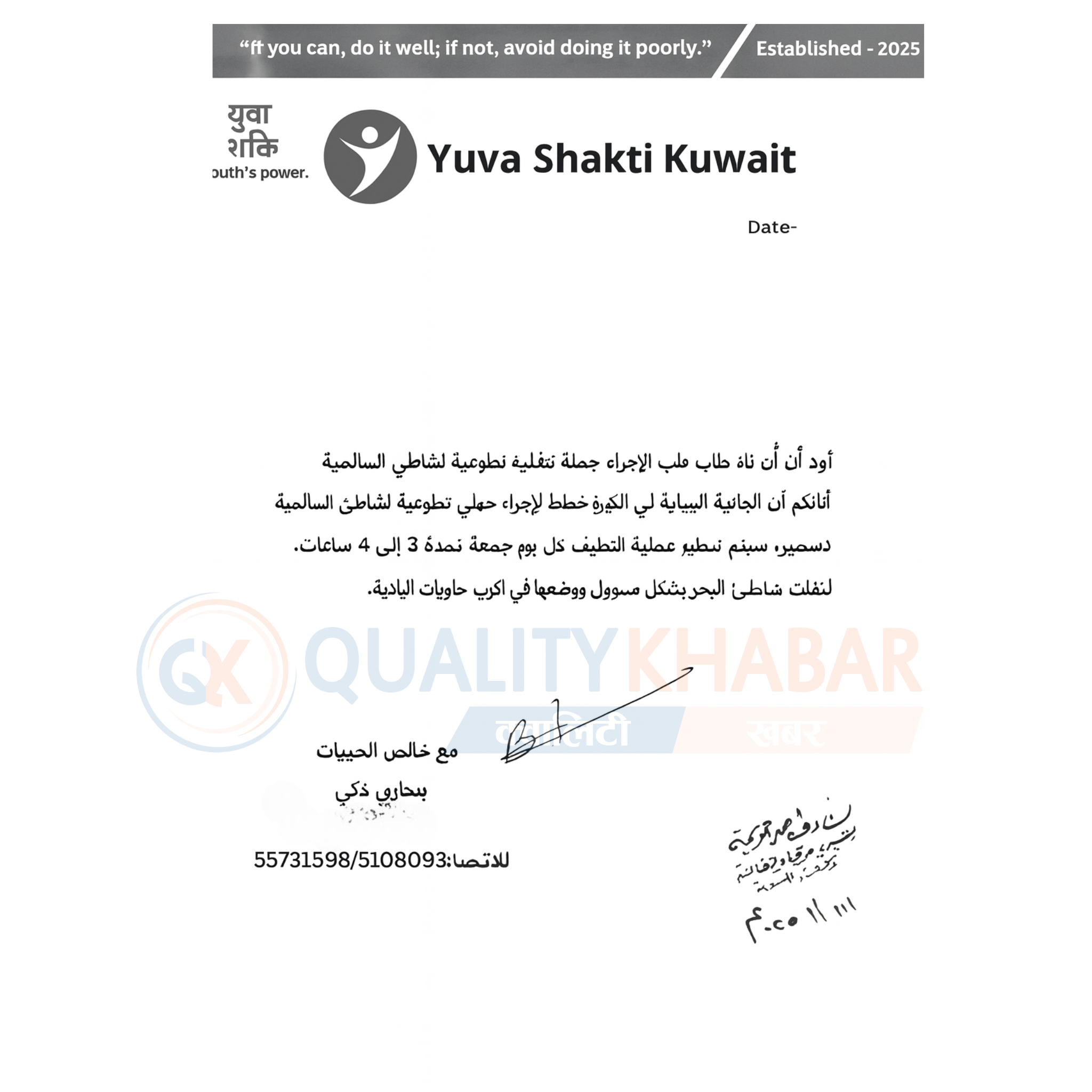 यही पृष्ठभूमिमा वातावरणीय संरक्षण, समुदायिक सहभागिता र सामाजिक सचेतना अभिवृद्धिको उद्देश्यले संस्थाले कुवेतमा हुने सरसफाइ अभियानमा औपचारिक रूपमा सहभागी हुने निर्णय गरेको छ। विश्वव्यापी रूपमा परिचित यो अभियानमार्फत नेपाली समुदायको नाम, छवि र पहिचान अझ उजागर हुने अपेक्षा गरिएको छ।